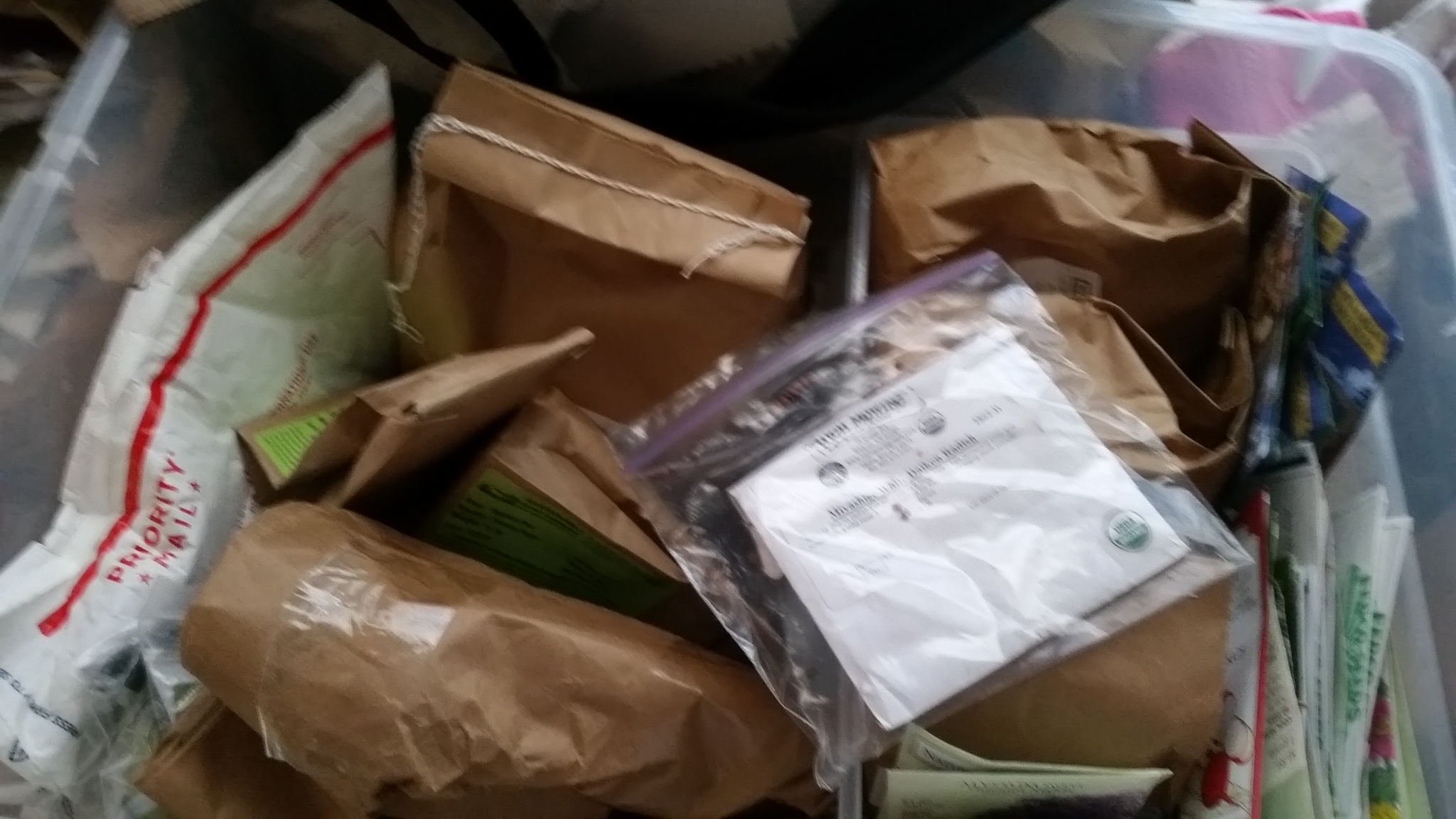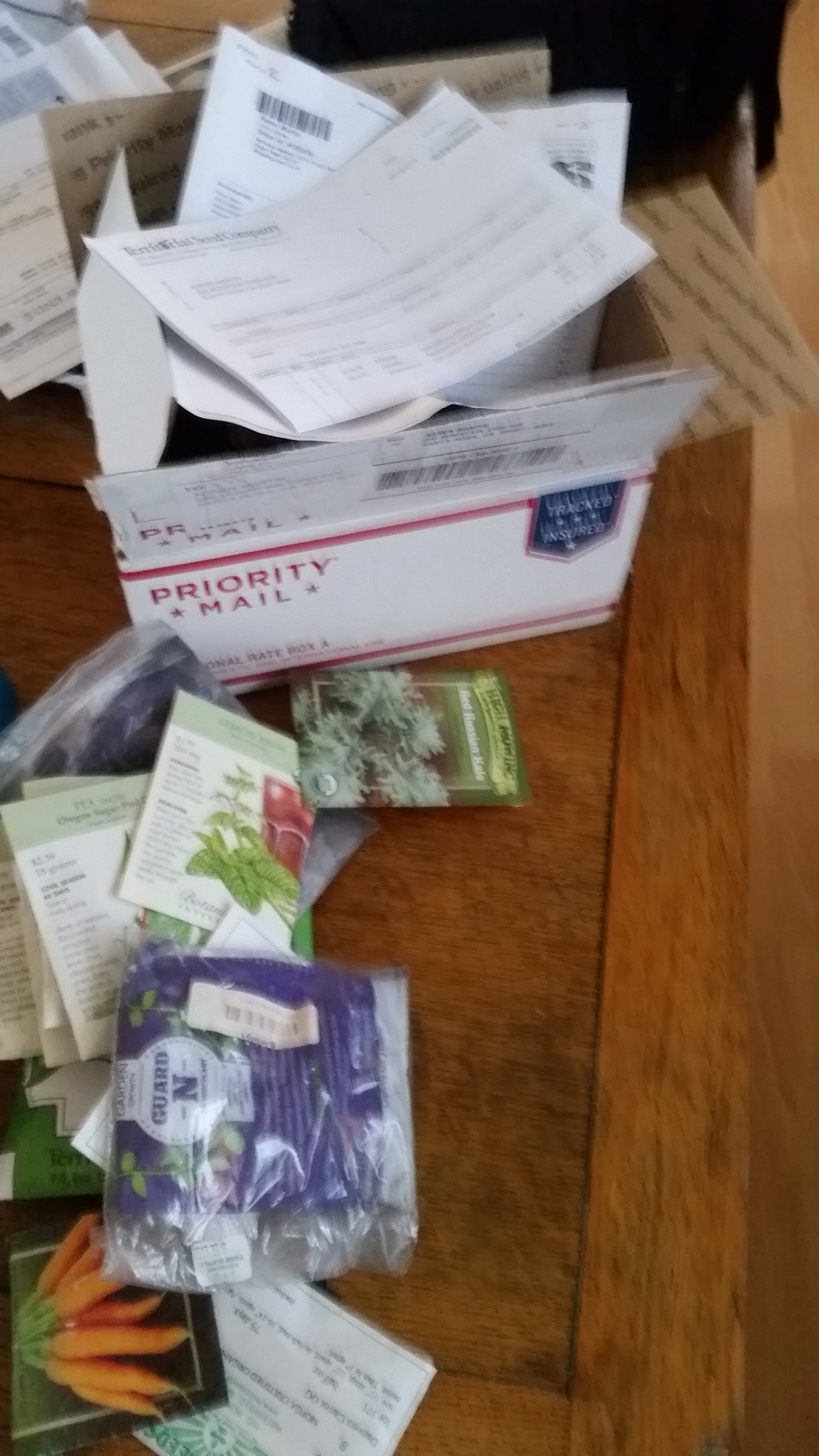 Last night I picked 2 baskets of strawberries, and I picked another this morning. I also did some weeding in the greens, as usual. Then, since I had some time to myself while T and Z were at the park, I organized my seeds a bit- I had 2 boxes that hadn’t been added to my seed storage. I picked out seeds I’d like to get planted asap (peas, carrot, radish).