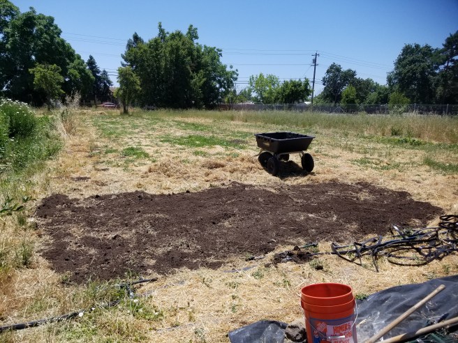 I almost did go to Urgent Care around 4:45pm or so, but first I had to water the summer crop seeds that I started yesterday ;). And monitor the water that was running in the garden. I walked around 5/6 of the garden, which was not a good idea. That said, walking feels a lot better on grass than on gravel or in the house. Walking while pushing a grocery cart also feels better. I also added drip tape to the bed space that I prepared this morning. Had to get water on there! I hand water a lot before I transplant in order to get the compost to start to mix into the soil and coalesce into something that can hold the plant up. I have dozens of plants to get into the ground. My friend thinks I might have trouble being on my knees. We have an upright(ish) transplanter (bought from Johnny’s) but I may have broken it a couple of years ago because I just can’t figure out how to operate that thing. #clumsy Our soil is too hard to be able to get plants in using that thing, anyway.